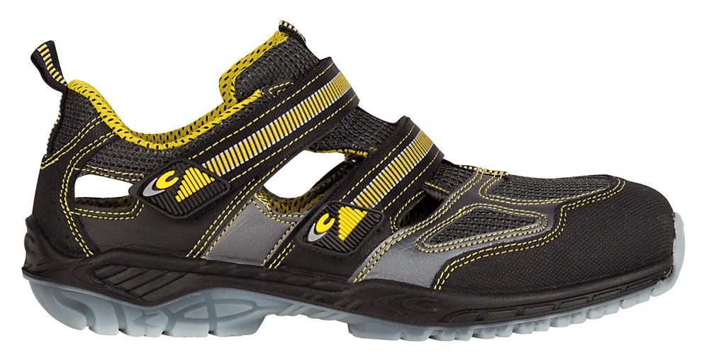 Sandali estivi comodi e resistentissimi, realizzati in pelle, possiedono una fodera in tessuto SPHERA, completamente in poliammide antibatterico, altamente resistente ma traspirante. Resiste agli strappi ed alle abrasioni grazie alla particolare struttura indemagliabile. Il sottopiede (o soletta, fusbbett) è interamente anatomico e profumato, soffice e confortevole, in grado di assorbire l'energia d'impatto per un comfort sempre al top. Lascia il piede asciutto nonostante il grip elevato. Infine il puntale è in alluminium 200J e la lamina non metalicca (antistatica) in APT Plate.